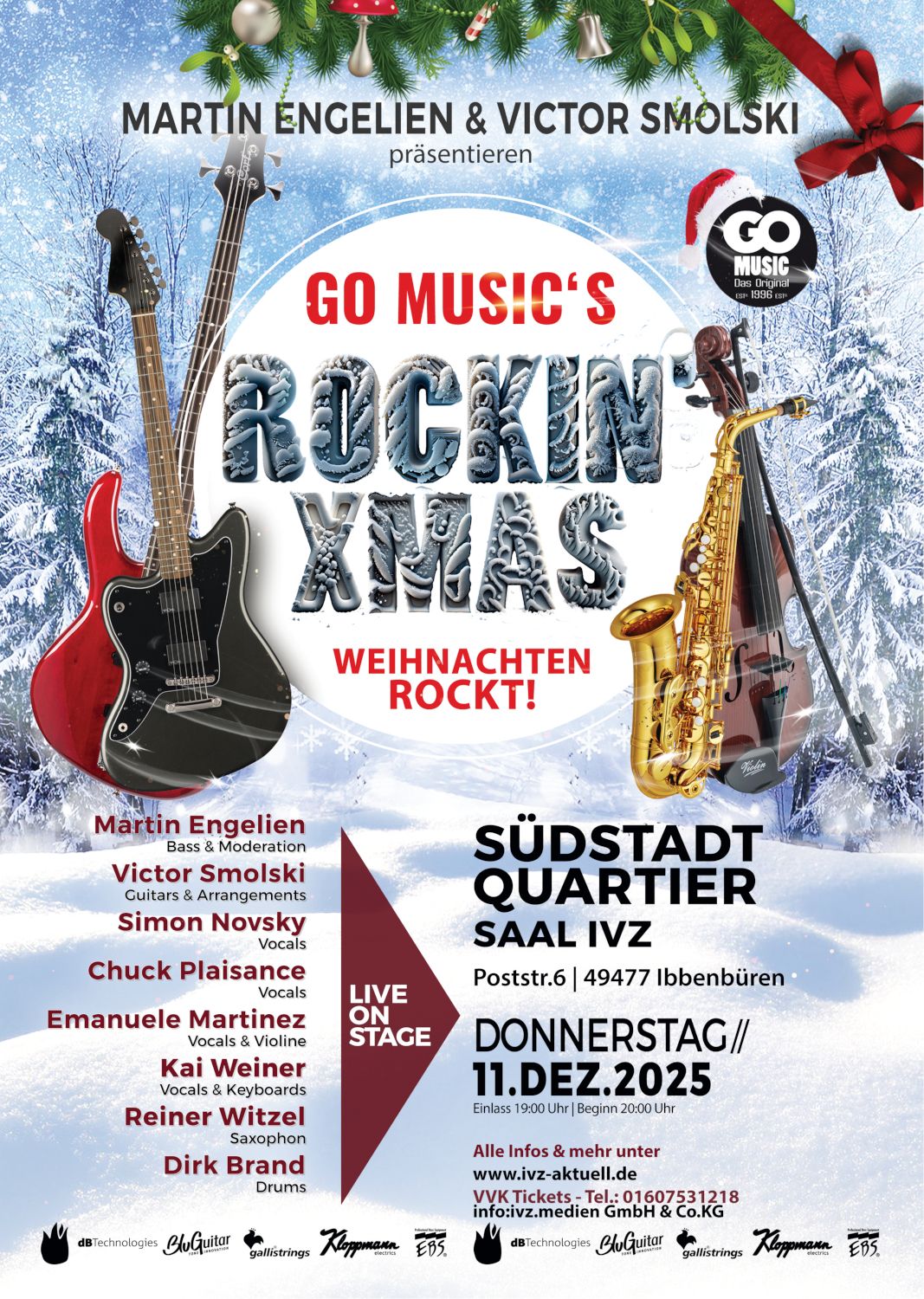 Buy tickets online. Advance sale from 31.10.2025 till 10.12.2025 Tickets for GO MUSIC ROCKIN' X-MAS SHOWIbbenbürenAdmission at 19:00 o'clock